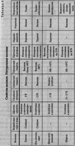 конусообразных колец, нанизанных друг на друга, и представляет собой ороговевшие клетки. За чешуйчатым слоем следует корковый — основной, от которого зависят свойства волокна и изделий из них. В волокне может быть и третий — сердцевинный слой, состоящий из рыхлых, заполненных воздухом клеток. Под микроскопом видна и своеобразная извитость шерстяных волокон. В зависимости от того, какие слои в шерсти присутствуют, она может быть следующих видов: пух, переходный волос, ость, мертвый волос (рис. 4).