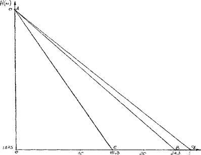 * ( 1- sinα) = 4408 * ( 1- sin 21.5 ° ) = 1615 м :