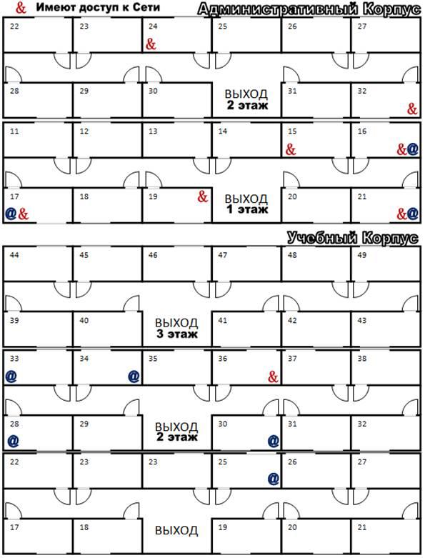· Медицинский кабинет, отдел кадров и помещение охраны не входят в сеть.