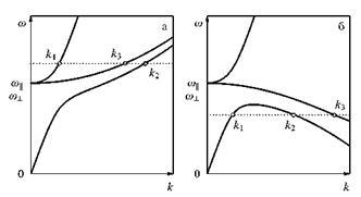 Одна из трех поляритонных ветвей, изображенных на рис. 1а, очевидно, обладает отрицательной групповой скоростью, поскольку частота поляритона со