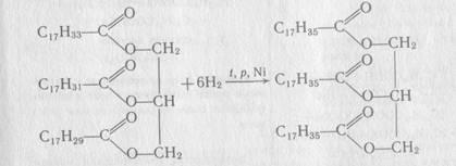 Так как в состав растительных масел входят сложные эфиры непредельных карбоновых кислот, то их можно подвергнуть гидрированию: