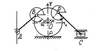 На данном механизме (рисунок 1 (Кинематическая схема)) имеется одна неподвижная опора, на которой находится подвижный барабан, к нему на шарнирах прикреплены стержни [5]. Один стержень связан шарниром с ползуном и движется вдоль горизонтальной направляющей [5]. Другой стержень шарниром соединен с неподвижной осью и движется в вертикальном направлении [5].