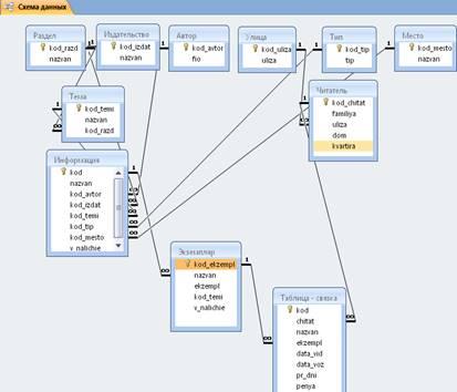 – Затем заполняются таблицы «Экземпляр», «Улица», эти данные вклячаются в таблицы «Таблица – связка» и «Читатель».