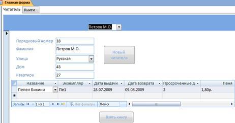 Пользователями библиотеки являются читатели. На каждого читателя ведется формуляр, который содержит информацию о нем (адрес, фамилия, телефон), а также сведения о взятой книге, дате получения и возврата.