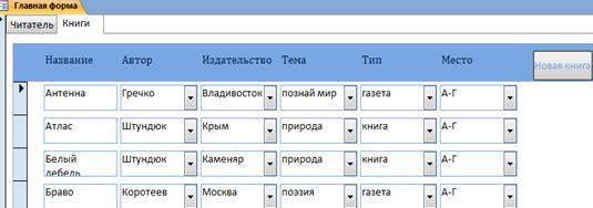 – В первую очередь заполняются таблицы Автор, Тема, Тип, Издательство, Место.