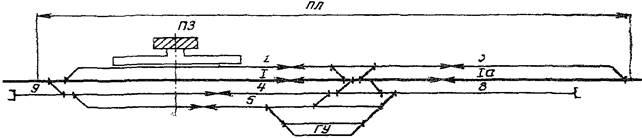 Если станция является опорной или имеет примыкания подъездных путей с большой грузопереработкой или пропускает большое число пассажирских (пригородных) поездов, то к табличным данным в этих случаях добавляется еще 1 - 2 пути. Для выполнения маневровой работы необходимо проектирование один вытяжной путь полезной длиной не менее половины заданной полезной длины приемо-отправочных путей. Число путей для грузовых операций принимается в зависимости от схемы грузового двора.
