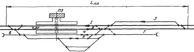 Сравнивая потребную длину станционной площадки с фактической, выбирают тип промежуточной станции. При этом начинают сопоставление указанных длин станционных площадок с продольного типа. Если фактическая длина станционной площадки больше или равна потребной для продольного типа, то выбирают для разработки продольный тип станции. Если же Lф