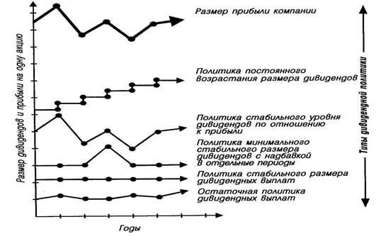 Различные типы дивидендной политики акционерной компании проиллюстрированы на графике, представленном на рис. 1.1.