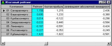 Получив данные с сайта,вы объединяете финансовые отчеты анализируемого и выбранных из базы предприятий и составляете их рейтинг в соответствии с выбранными вами критериями.