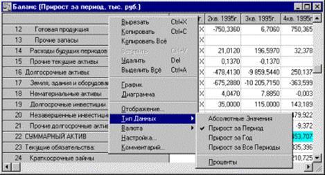 Этим инструментарием являются сценарии преобразования исходных данных в аналитические таблицы и шаблоны, определяющие алгоритмы расчета финансовых показателей. Расчетные формулы составляются в непосредственном диалоге с системой и записываются, как и в Excel, в таблицах.