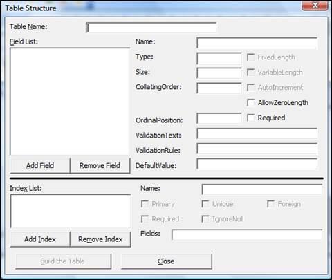 5. Добавим все необходимые поля тем же способом и нажмем кнопку Close, вернувшись в окно Table Structure.