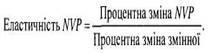 Як показник чутливості проекту до зміни тих чи інших змінних використовують показник еластичності чистої теперішньої вартості (NPV), який обчислюються за формулою: