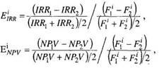 Розрахунок еластичності внутрішньої норми рентабельності і чистої теперішньої вартості можна виконати за формулами: