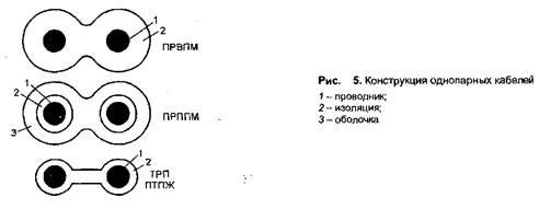 Конструктивные и электрические характеристики однопарных кабелей и проводов СТС приведены в табл. 15 и 1 Наибольшее распространение на СТС получили однопарные кабели типа ПРППМ с полиэтиленовой изоляцией жил, поверх которой наложена оболочка из свето стабилизированного шлангового полиэтилена. Техническими условиями предусмотрен выпуск однопарных кабелей марки ПРПВМ, отличающихся от ПРППМ наличием поливинилхлоридной оболочки. Строительная длина кабеля 500 м.