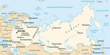 Россия расположена в Северном полушарии, на севере материка Евразия. Она омывается водами Тихого и Северного Ледовитого океанов, а также Балтийским, Чёрным, Азовским морями Атлантического океана и Каспийским морем, при этом обладая самой протяженной береговой линией (37 653 км). Уральские горы, река Эмба и Кумо-Манычская впадина делят Россию на европейскую и азиатскую части, последняя включает в себя Северный Кавказ, Сибирь и Дальний Восток России. Россия – страна, богато наделенная самыми разнообразными природными ресурсами. По запасам многих из них России принадлежит первое место в мире. Зарубежные путешественники, ученые и дипломаты издавна восхищались сказочными богатствами российских недр. Главное богатство России – это щедрая природа: бескрайние леса, поля, моря. Это ее регионы, каждый из которых играет свою незаменимую роль в жизни страны, давая ей кто нефть и газ, кто машины и научные открытия.