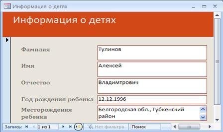 Разработанная БД позволяет относительно быстро находить данные по детям, добавлять данные создавать, корректировать их, дополнять, выводить результаты работы на экран или печать в виде заданных форм.