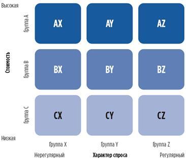 При выборе решений по организации управления запасами рекомендуется объединять методологию АВС-анализа с методологией XYZ-анализа.