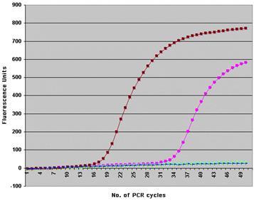 С помощью серийных разведений образцов ДНК определили чувствительность системы ПЦР в реальном времени, которая в обсуждаемой модели позволяла обнаруживать 0,28 нг (приблизительно 20 копий ) ДНК в пробе[8]
