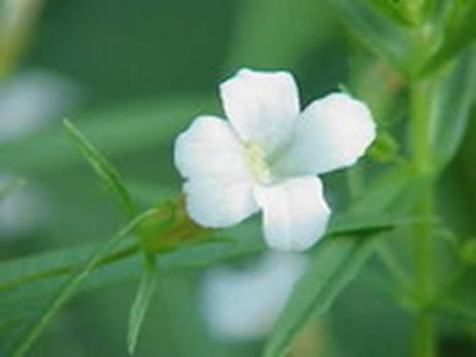Цветки располагаются одиночно в пазухах листьев. Цветоножки длинные, с двумя длинными прицветниками при основании чашечки. Чашечка пятидольная, в 2-3 раза короче венчика. Венчик до 2 см длиной, с желтоватой трубкой и почти двугубым отгибом, белым с фиолетовыми жилками. Тычинок четыре: две короткие и две длинные. Столбик один, по длине значительно превосходит тычинки. У основания столбика находится нектарный диск.