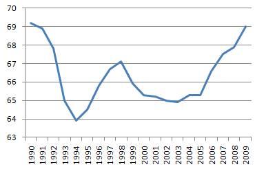 Отметим, что эти тенденции прослеживаются только в наиболее развитых странах. В большинстве стран ситуация заметно другая.