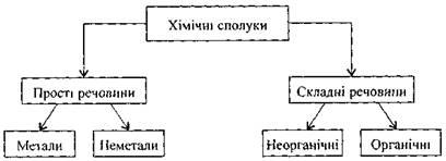 , у свою чергу, на атоми Гідрогену Η та Оксигену О. Отже, речовини заведено розподіляти на прості та складні (схема 2).