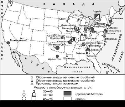 В конце 1990-х гг. в автомобильной промышленности США находили применение: 79°% всего потребляемого в стране натурального каучука, 57 % синтетического каучука, 40 % продукции станкостроения, 34 % чугуна, 27 % алюминия, 25 % листового стекла, 23 % цинка, 15 % стали, 11 % меди, 4 % пластмасс.