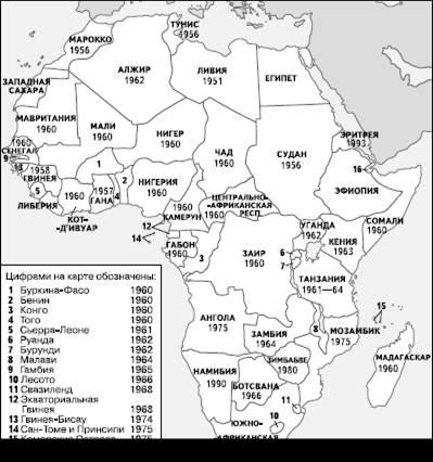 Многие африканские государства после завоевания независимости приняли новые названия, в некоторых случаях как бы возрождавшие названия существовавших в средние века государственных образований. Так, Золотой Берег стал Ганой, Французский Судан – Мали, Дагомея – Бенином, Верхняя Вольта – Буркина-Фасо, бывшее Бельгийское Конго – Заиром, Южная Родезия – Зимбабве, Северная Родезия – Замбией, Ньясаленд – Малави, Бечуаналенд – Ботсваной.