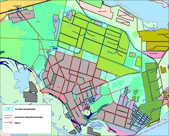Рисунок 3. Схема размещения ливневой канализации города Сургут.