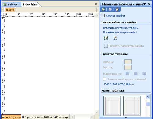 Дважды щелкните на домашней странице левой кнопкой мыши, и она откроется в режиме конструктора для редактирования (страница - index.htm).