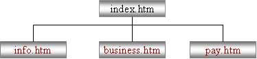 5. Создаем в редакторе FrontPage структуру сайта , т.е. к главной странице добавим еще три страницы: info - О компании; business - Бизнес-обзор проекта; pay - Способы оплаты. Для этого надо перейти в режим Переходы, выполнив команду Вид/Переходы. Затем необходимо выделить домашнюю страницу и щелкнуть на кнопке Новая страница на панели Переходы или применить контекстное меню, добавится Новая страница 1. Аналогичным образом добавляем еще две новые страницы. Структура сайта представлена на рисунке.