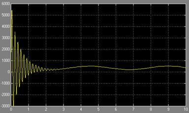 Результат работы электрической модели нашей системы автоматического управления двигателем постоянного тока независимого возбуждения показан на рисунках 15 – 17. Момент нагрузки двигателя постоянен и не изменяется во время работы схемы.