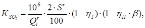 эффективность очистки дымовых газов от оксидов серы (сероочистка), принимаем ;