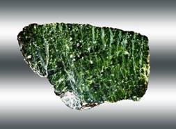 Основной минерал серпентин (кристаллы в виде тонких листочков, волокон); в трещинах основного минерала серпентина перпендикулярно стенкам трещин часто образуются светлые волокна минерала асбеста; из других минералов встречаются пироксены, магнетит. |