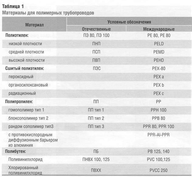 При производстве пластмассовых труб используются эффективные коррозионно-стойкие материалы, в частности различные полимеры, выпускаемые промышленностью высокоразвитых стран. К ним относятся: полиэтилен, акрилонитрилбутадиенстирол, полипропилен, полибутилен, телефталат, эпоксидные винилэфирные смолы и т. д. (табл. 1) [1].