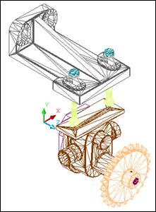 2. Затем в Корпус (поз. 1) помещается Ось (поз. 2) с надетым на него вторым Зубчатым Колесом (поз. 3).