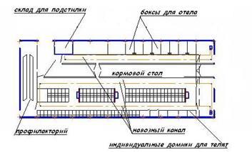 | Коровники и здания для молодняка и скота на откорме, помещения передержки осемен.коров и содержание быков |