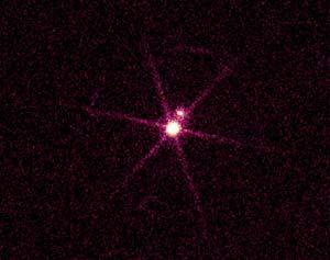 Рентгеновский снимок системы звезд Сириус, сделанный из космической обсерватории Чандра. Более яркий источник на фото – звезда Сириус В, представляющая собой белый карлик.