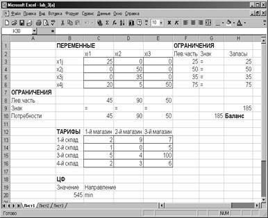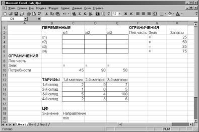 из нескольких пунктов отправления в пункты назначения. При этом величина транспортных расходов прямо пропорциональна объему перевозимой продукции и задается с помощью тарифов на перевозку единицы продукции