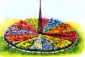 В таких часах сначала с помощью гномона на кругу отмечают в течение светлого дня время (часы), а потом на этих местах высаживают однолетники - в виде соответствующих цифр.