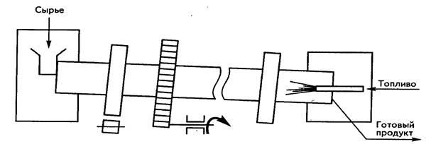 Рис. 1 Схема вращающейся печи для обжига цементного клинкера