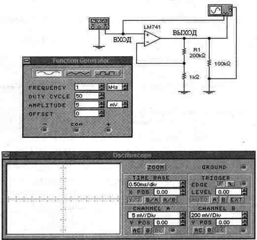 Исследование особенностей работы операционного усилителя в режимах неинвертирующего и инвертирующего усилителей