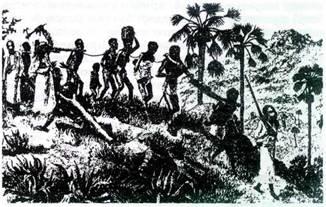 невольников. Причём речь идёт только о рабах, доставленных к месту назначения живыми. Если же учесть, что и при охоте на людей, и при перевозке через океан смертность среди них была очень высока, то можно согласиться с выводами тех авторов, по подсчётам которых в период работорговли Африка потеряла свыше 60 млн. человек.