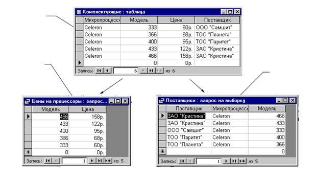 базы понимается отбор отображаемых данных в соответствии с заданным критерием, их упорядочение, оформление и последующая выдача на устройство вывода или передача по каналам связи.