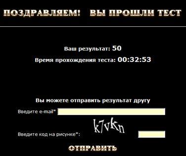 Також користувач може відправити результат свого тестування другу, заповнивши необхідні дані (рисунок 3.13).