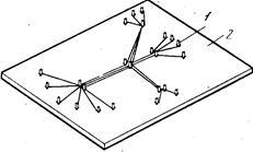 Конструктивно-технологическая отработка жгута дает возможность изготовить его вне ЭВА путем раскладки монтажных проводов и кабелей на шаблоне. В зависимости от конфигурации жгутов применяют плоские или объемные шаблоны. Плоский шаблон (рис. 8) представляет собой