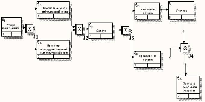 Диаграмма IDEF3 работы «Прием пациента»