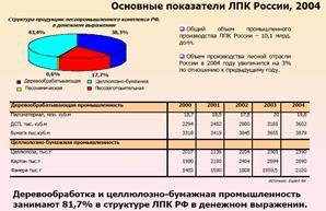 Вклад лесопромышленного комплекса в ВВП России составляет 2,5%, а в структуре налоговых платежей 2%. Освоение расчетной лесосеки в Российской Федерации составляет 22%. К 2015 году ожидается увеличение доли продукции глубокой переработки древесины. Несмотря на временные трудности, перспектива развития российского ЛПК обнадеживает. Спрос на внутреннем рынке может обеспечить рост выпуска лесопродукции на 7-8% в год, а в целом в 2015 году ее производство способно утроиться.