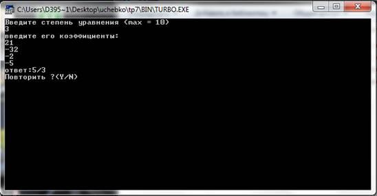 Данная процедура находит рациональные решения уравнения с целочисленными коэффициентами.