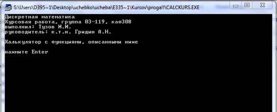 Разработана программа CalcKurs, выполняющая следующие функции: