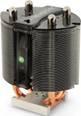 Медь здесь было использовать просто бессмысленно - медный радиатор тут обеспечивал бы примерно те же параметры, будучи втрое тяжелее, а также труднее в обработке и дороже. Однако, когда чипы начали меняться вышеописанным образом, а вентиляторы в кулерах начали становиться все мощнее и мощнее, медь явно стала вырываться вперед. При относительно высоких скоростях потока воздуха, и малой площади чипа, разница в термальном сопротивлении одинаковых радиаторов из меди и алюминия может составлять до 30 с лишним процентов. Хотя, конечно, троекратная разница в весе при этом остается.